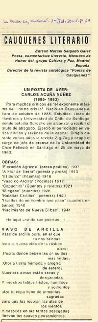 Un poeta de ayer. Carlos Acuña Núñez (1885-1963) [artículo] Edison Marcel Salgado Galaz.