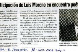 Exitosa participación de Luis Moreno en encuentro poético [artículo]. La Prensa (Tocopilla, Chile) oct. 18, 2006, p. 3 .