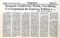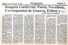 Joaquín Gutiérrez: poeta, novelista, corresponsal de guerra, editor y-- [artículo]/ Darío de la Fuente D. El Espectador (Diario : Quilpue, Chile)-- oct. 10, 2006, p. 2 .