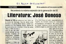 Literatura: José Donoso [artículo]. El Mauco (Curacaví, Chile) sept. 29 - oct. 2006 .