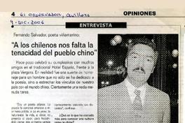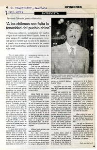 "A los chilenos nos falta la tenacidad del pueblo chino" (entrevista) [artículo]/ Barrios V., María José. El Observador (Quillota, Chile) dic. 9, 2006, p. 4 .