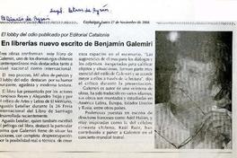 En librerías nuevo escrito de Benjamín Galemiri [artículo]. Aysén (Diario: Chile) nov. 27, 2006. .