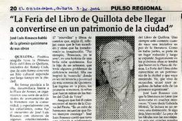 "La Feria del Libro de Quillota debe llegar a convertirse en un patrimonio de la ciudad" [artículo]. El Observador (Quillota, Chile) dic.3, 2006, p. 20 .