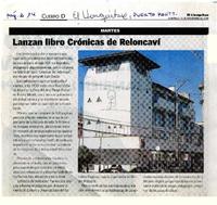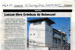 Lanzan libro Crónicas de Reloncaví [artículo]. El Llanquihue (Diario : Puerto Montt, Chile)-- nov. 19, 2006, p. D14 .