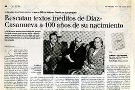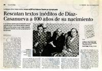 Rescatan textos inéditos de Díaz-Casanueva a 100 años de su nacimiento [artículo]/ Roberto Careaga C. La Tercera (Diario: Santiago, Chile)-- dic. 12, 2006, p. 44. .