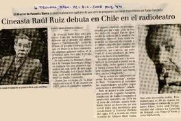 Cineasta Raúl Ruiz debuta en Chile en el radioteatro [artículo]/ Rodrigo González y Rodrigo Miranda. La Tercera (Diario: Santiago, Chile) dic. 12, 2006, p. 44 .