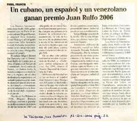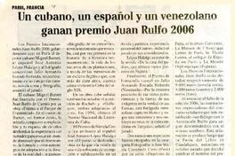 Un Cubano, un español y un venezolano ganan premio Juan Rulfo 2006 [artículo].