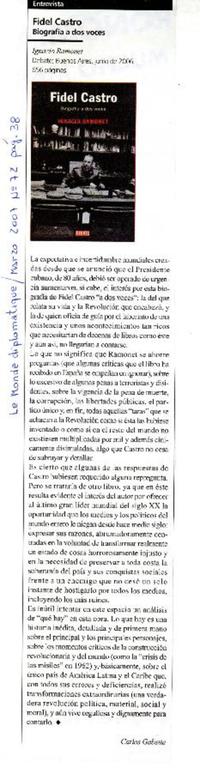 Fidel Castro, biografía a dos voces [artículo] / Carlos Gabetta. Le Monde Diplomatique (Chile)-- no. 72 (mar. 2007) p. 38. .
