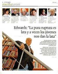 Edwards: "La pura ruptura es lata y a veces los jóvenes nos dan la lata" [entrevista] / [artículo] : Sonia Lira. El Mercurio (Diario: Santiago, Chile) abr. 7, 2007, p. 4-5 (suplemento "Revista de libros") .