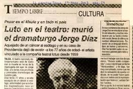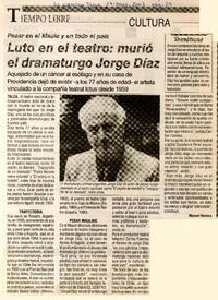 Luto en el teatro: murió el dramaturgo Jorge Díaz [artículo]/ El Centro (Talca, Chile) mar.14, 2007, p. 29 .