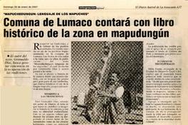 Comuna de Lumaco contará con libro histórico de la zona en mapudungún [artículo]. El Austral (La Araucanía, Chile) ene. 28, 2007, p. A37 .