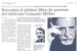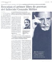 Rescatan el primer libro de poemas del fallecido Gonzalo Millán [artículo]/ Roberto Careaga C. La Tercera (Diario: Santiago, Chile) oct. 31, 2006, p. 41 .