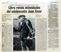 Libro revela intimidades del adolescente Juan Emar [artículo]/ Jazmín Lolas. Las Últimas Noticias (Diario : Santiago, Chile)-- ene. 26, 2007, p. 35 .
