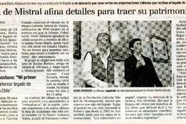 Albacea de Mistral afina detalles para traer su patrimonio a Chile [artículo]/ Elisa Montesinos. La Tercera (Diario: Santiago, Chile) mar. 15, 2007, p. 100 .