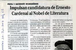 Impulsan cadidatura de Ernesto Cardenal al Nobel de Literatura [artículo].