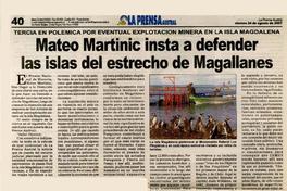 Mateo Martinic insta a defender las islas del estrecho de Magallanes [artículo].