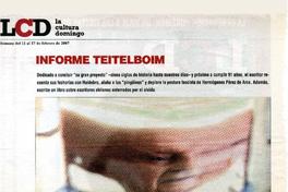 Informe Teitelboim (entrevista) [artículo] / Javier García. La Nación Domingo (Diario : Santiago, Chile)-- feb. 11, 2007, p. 52-53 (suplemento "La cultura domingo") .