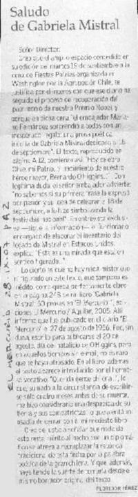 Saludo de Gabriela Mistral [artículo] Floridor Pérez.