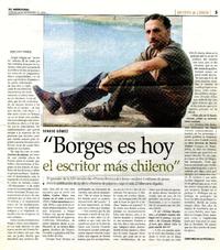 "Borges es hoy el escritor más chileno" (entrevista) [artículo] / María Teresa Cárdenas. El Mercurio (Diario : Santiago, Chile)-- sept. 24, 2004, p.5-7 (suplemento "Revista de libros") .
