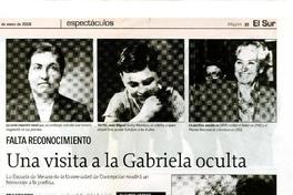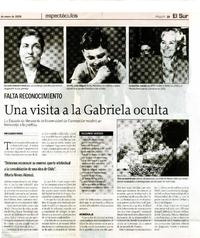 Una visita a la Gabriela oculta [artículo]/ Claudia Farías. El Sur (Diario : Concepción, Chile)-- ene. 14, 2008, p. 23 .
