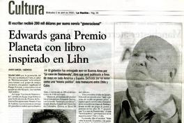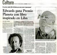 Edwards gana Premio Planeta con libro inspirado en Lihn [artículo]/ Javier García. La Nación (Diario: Santiago, Chile) abr. 2, 2008, p. 26 .