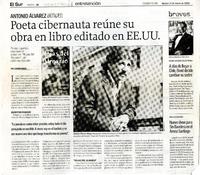 Poeta cibernauta reúne su obra en libro editado en EE.UU. [artículo]/ Claudia Farías. El Sur (Diario : Concepción, Chile)-- mar. 11, 2008, p. 22 .