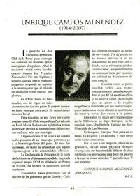 Enrique Campos Menéndez [artículo] / R. C. F. Ciudad de los Césares (Revista : Chile)-- no. 80 (mayo 2008) p. 44. .
