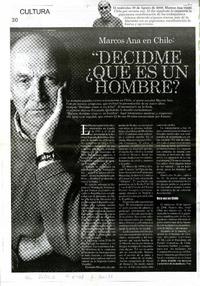 "Decidme qué es un hombre" [artículo] / Rolando Carrasco. El Siglo (Diario : Santiago, Chile)-- mayo 9, 2008, p. 30-31. .