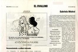 Gabriela Mistral [artículo]. El Ovallino (Chile) abr. 8, 2008, p. 4 .