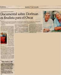 Documental sobre Dorfman es finalista para el Oscar [artículo] Fernando Zavala.