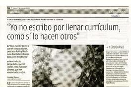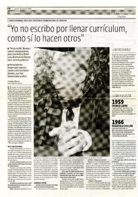 "Yo no escribo por llenar currículum, como sí lo hacen otros" (entrevista) [artículo] / Carolina Marcos. La Discusión (Diario : Chillán, Chile)-- jul. 7, 2008, p. 16. .