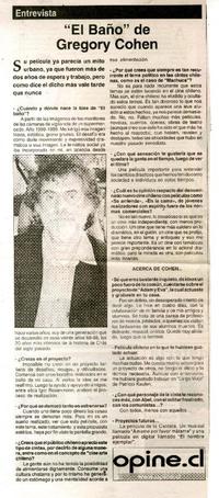"El Baño" de Gregory Cohen (entrevista) [artículo].