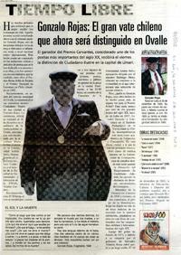Gonzalo Rojas: El gran vate chileno que ahora será distinguido en Ovalle [artículo]. El Día (Diario : La Serena, Chile)-- dic. 28, 2005, p. 23 .