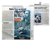 Violeta Parra en Internet [artículo]. El Mercurio (Antofagasta, Chile) oct. 5, 2008, p. A51 .