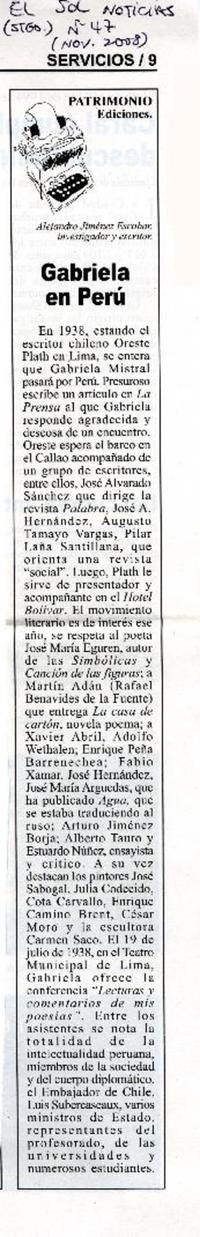 Gabriela en Perú [artículo]. El Sol Noticias (Diario : Santiago, Chile)-- no. 47 (nov. 2008) p. 9. .