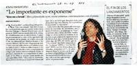 "Lo importante es exponerse" [artículo] / Contanza Rojas V. El Mercurio (Diario : Santiago, Chile)-- nov. 28, 2008, p. A14. .