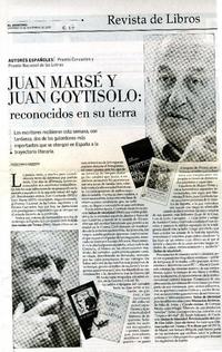 Juan Marsé y Juan Goytisolo: reconocidos en su tierra [artículo] / Pedro Pablo Guerrero. El Mercurio (Diario : Santiago, Chile)-- nov. 30, 2008, p. E17 (Revista de libros) .