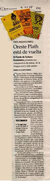 Oreste Plath está de vuelta [artículo] / Romina de la Sotta Donoso. El Mercurio (Diario : Santiago, Chile)-- dic. 9, 2008, p. A10. .