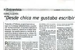"Desde chica me gustaba escribir historias" [artículo]. Jorge Abasolo Aravena.