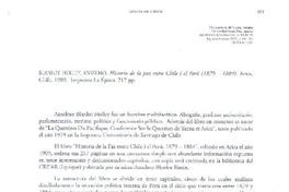Historia de la paz entre Chile i Perú (1879-1884) [artículo] / Juan Podestá Arzubiaga. Revista Ciencias sociales (Iquique : Chile)-- no. 21 (segundo semestre 2008) p. 101-103. .