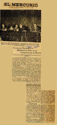 Homenaje nacional a la memoria de Bello en el centenario de su muerte [artículo]. El Mercurio (Diario : Santiago, Chile)-- abr. 3, 1964. .
