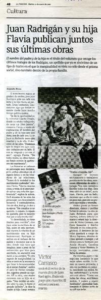 Juan Radrigán y su hija Flavia publican juntos sus últimas obras [artículo] / Alejandro Bruna. La Tercera (Diario : Santiago, Chile)-- ene. 12, 2010, p. 40. .
