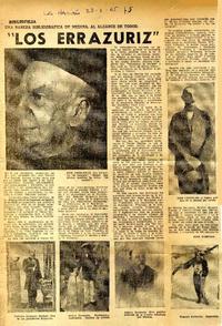 Los Errázuriz [artículo] / José Zamudio. La Nación (Diario : Santiago, Chile)-- mayo 23, 1965, p. 5. .