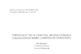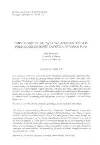 "Imprólogo" de Octavio Paz [artículo] / Ilka Kressner. Revista Chilena de Literatura (Revista : Santiago, Chile)-- no. 75 (nov. 2009), p. 69-90. .