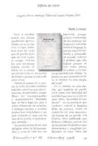 Oficio de vivir [artículo] / Malú Urriola. Nomadías (Revista, Chile)-- no. 10 (nov. 2009) p. 239-241. .