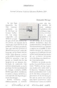 Adiabática [artículo] / Fernanda Moraga. Nomadías (Revista, Chile)-- no. 10 (nov. 2009) p. 242-245. .