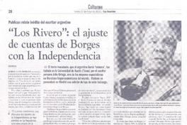 "Los Rivero": el ajuste de cuentas de Borges con la Independencia [artículo]. La Nación (Diario : Santiago, Chile)-- mayo 17, 2010, p. 28. .