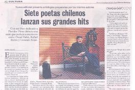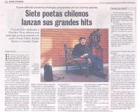 Siete poetas chilenos lanzan sus grandes hits [artículo] / Jazmín Lolas E. Las Últimas Noticias (Diario : Santiago, Chile)-- mayo 14, 2010, p. 54. .