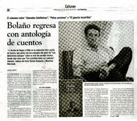Bolaño regresa con antología de cuentos [artículo] / Javier García. La Nación (Diario : Santiago, Chile)-- mayo 12, 2010, p. 28. .