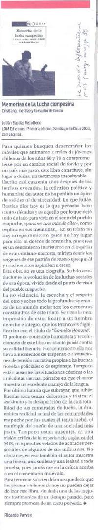 Memorias de la lucha campesina [artículo] Ricardo Parvex.